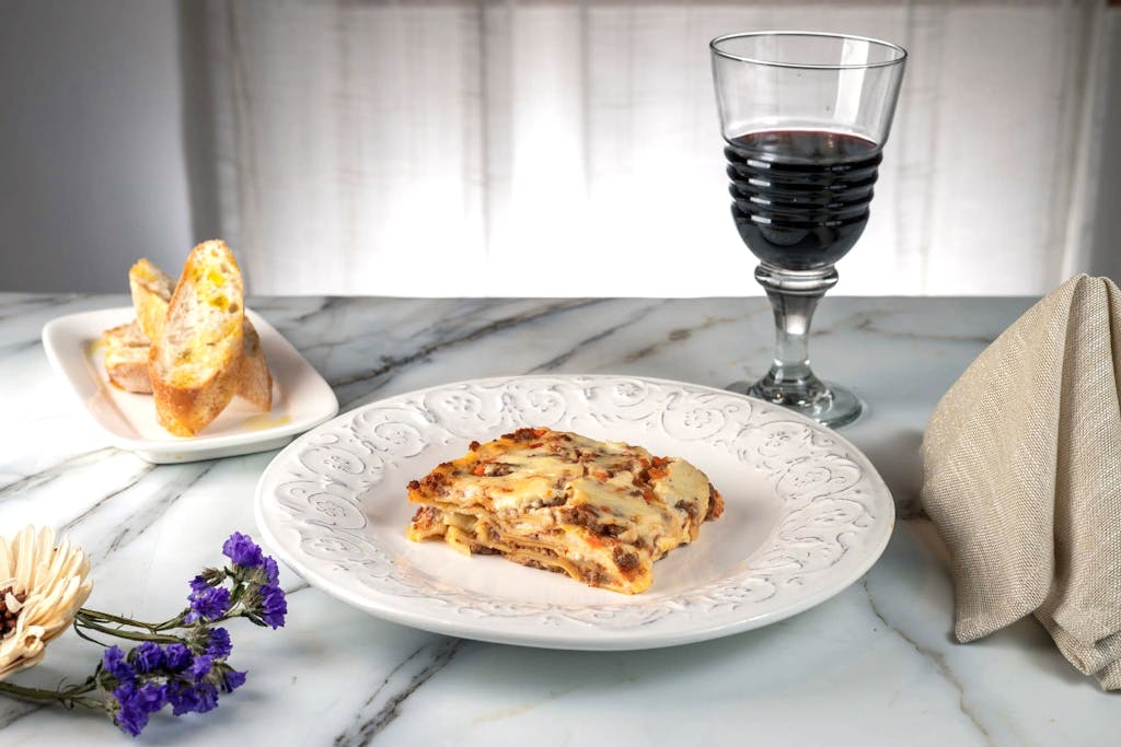Italian Artisanal Family-Style lasagna served on 8" inches square aluminum tray made with a rich ''Slow-Cooking'' Beef Ragout with a diced vegetables cutting-style ''Mirapoix" and an innovative homemade Bechamel. Note: Item comes with a cooking instruction flyer to bake at home