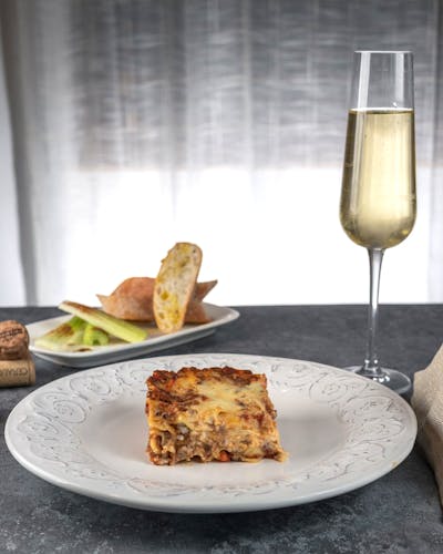 ''Lasagnetta" means "Little Lasagna'' served on half tray. Perfect for two people. Made with a Superb Green Lentil and brown rice flour lasagna sheets pasta with a rich ''Slow-Cooking'' Beef Ragout with diced vegetables ''cutting-style' mirapoix and an innovative Homemade Bechamel.